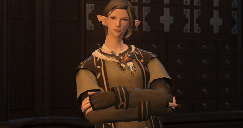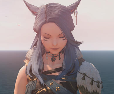 Despite her outer sass paired with a sharp eye, she fusses over the well-being of all but the most rotten of souls who cross her path. People may find warm meals and cold drink under her roof regardless of race or circumstance, especially if they have nothing else. Having no tolerance for her city's stubborn xenophobia, bigots regardless of station are cut to pieces by her biting temper. She has overseen countless adventurers who come and go from the guild; continuing her grandfather's spirit in building community through teamwork, communication, and integrity.Her kindness, pragmatism, and wisdom have given her the moniker of 'Mother' by many both within New Gridania and throughout the Twelveswood. She adores carline flowers, for which her inn is named, as they are the beloved flower of a deceased family friend. Her favorite drink is tea; she has a talent for her famous eel pies.When Vaste enlisted in the Adventurer's Guild she was treated with the same care and measured critique as any others would find. The more Miounne realized however the extent to which Vaste struggled adjusting to not only demoralizing Gridanian life, but any life beyond a frontier tribe and family, she became vital to her survival. After the mind rape at Hydaelyn's mental contact Miounne nursed Vaste's health at no cost until she stabilized. Even after, she continues keeping her closest eye both on Vaste's person and her exploits. A wall now stands decorated in the Canopy's kitchen covered in paper clippings of Vaste's publicized deeds.She once made the mistake of burying a dead Vaste after she took her own life during the recovery stay. Miounne stood aghast in the middle of her mourning prayers, when Vaste again walked dirtied through her door. Though neither has ever said it directly, they nurture a bond like mother and child between them.