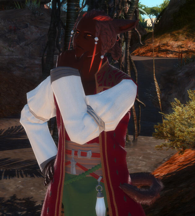 In the aftermath of this grand plan the Guardians of Time would disband; its members remain friends going their separate ways. Vaste marries her love Yugiri and the two settle into a domestic life within what was once Doma. There they abandon their violent pasts for peace, atonement, and pacifism. Their three children grow up without knowing the horrors their parents once did as children should. Along with her armor and spear Vaste would also abandon her name as the Warrior of Light, reverting to simply Ralhana, a contented nobody.Despite this however, their peace is disturbed the older their children become. From birth some other villagers harbor lingering distrust, confusion, and spite seeing rare mixed race children able to exist. Over a handful of years this prejudice grows and begins to be taken out on their oldest, Yoshino, which confuses and upsets her much the way similar treatment tormented her father's upbringing. Yugiri asks they leave for the sake of their children which Ralhana knows is not a choice made lightly.Before they can be corrupted any further they move across the sea, into Thavnair. Settling in a nation with a history of overcoming ethnic differences for co-existence, they are able to find better peace of mind. They continue as farmers before expanding into some business as tea crop sellers and through Yugiri's stonemason trade; their youngest son Yoshitsugu inherits his mother's workshop upon her retirement.At thirty years old Yoshino feels fulfillment in herself, a family of her own, and managing life in Thavnair- but has forever wondered about her heritage. Her parents have always stayed quiet on where they came from and whatever they did before she arrived; instead passing on the unique languages and dialects they spoke, the lullabies sang to them as infants, or the foreign proverbs they imparted wisdom with. She and her brothers were told one day they may meet peoples far, far away who would speak exactly what they spoke if they ever came across each other. That they must remain in some way connected to a part of them through what they know.Though she has put it from her mind getting caught up in the flow of life she refuses to any longer. After a few months of preparation she leaves Thavnair on a search for her lost family. In finding them she discovers far more about what she is capable of, her family's cultures and stories, and with her brothers confronts their parents on their pasts.