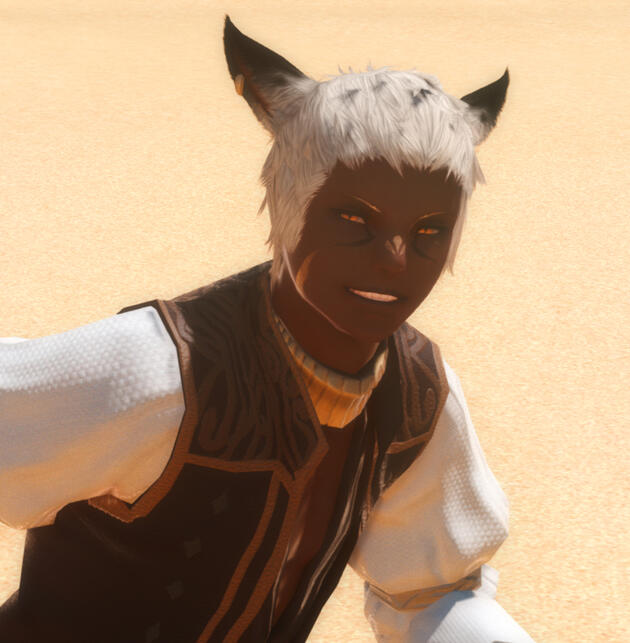 Father of Vaste and other children born after seizing the title of Nunh from its previous owner. Born and raised within the U Tribe, he sought to claim the power of leadership and mating rights which his people assigned together within their position of Nunh. He recognized quickly upon coming of age that he would be no match for the ruling Nunh of his youth in a contest. Instead he left his ancestral home, traveling Eorzea while searching for experiences which would strengthen him.This quest led him into the burgeoning Company of Heroes, who made their name as the only people insane yet brave enough to slay Primals for a living. Primals, by their nature sucking the land's aether dry then tempering any mortal who approached, slaughtered or warped the minds of countless comrades into hollowed, worshiping slaves. Through the unending carnage he relied on mentors such as Wheiskaet and their leader, Lorens as if they were his fathers. After slaying only two Primal incarnations however, Titan then Leviathan, the Company's human losses were too great, and the order was disbanded having achieved what many considered impossible regardless.Having trained and survived the impossible, U'odh returned to Forgotten Springs a full man, ready for his promised title. He defeated the then Nunh with ease using not only strength but his tremendous cunning. Shortly after his ascension the city state of Ul'Dah discovered ancient ruins on U Tribe lands. This led to the establishment of an Immortal Flames outpost to protect scholarly expeditions, and once again within their people's history, increased trade from outsiders.With traders came entertainers not far behind for the long days trekking endless desert. In this way Oghii Tayuun drifted into U'odh's life while following the troupe caravan she'd taken up with. They fell under a mutual fleeting passion and none were surprised when Oghii was soon pregnant. The day she gave birth at the turn of summer, U'odh presented her a choice. Either take the child and return north, or stay and raise her together. Before he could open himself to a third option and before their daughter had ever tasted milk Oghii departed alone, repulsed by the imperfection she had created mixing with Sun Seekers.Wounded and pitying, U'odh took in his child, watching as she was raised into U'ralhana.